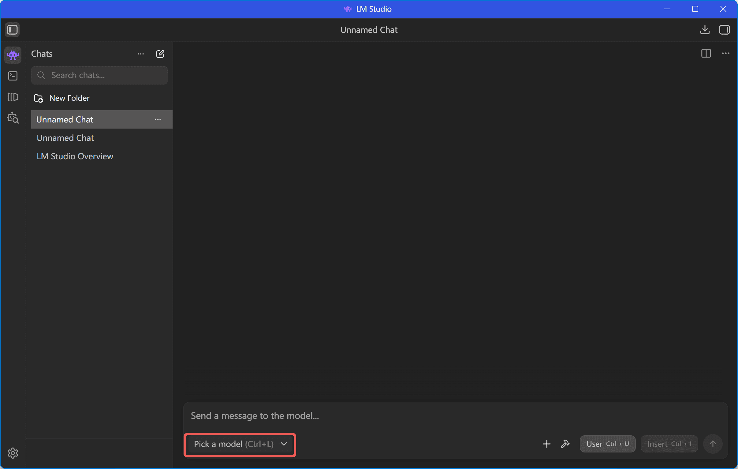 ◦ 「チャット」画面へ移動 → 画面上部「読み込むモデルを選択」をクリック