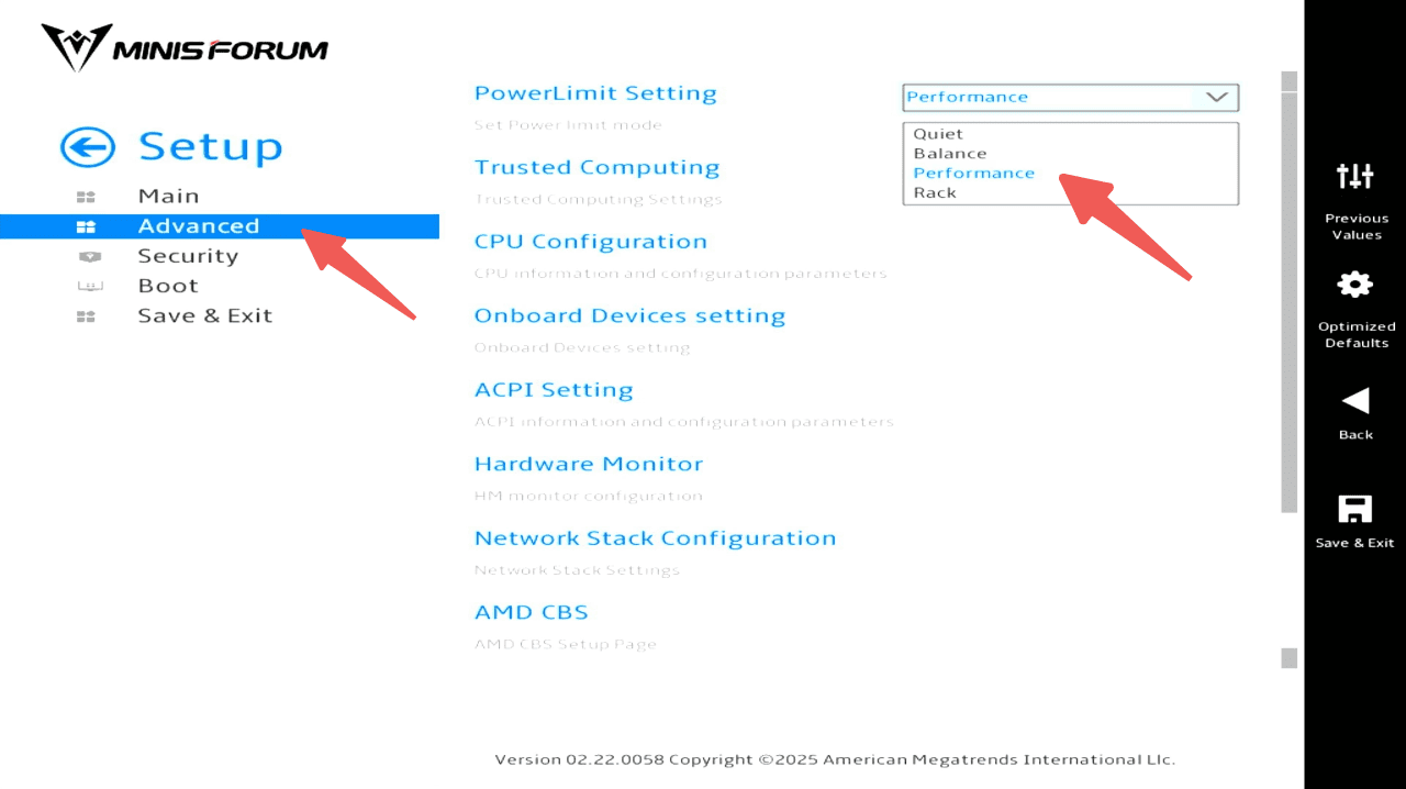 - 電源モードを「Performance(パフォーマンスモード)」に設定