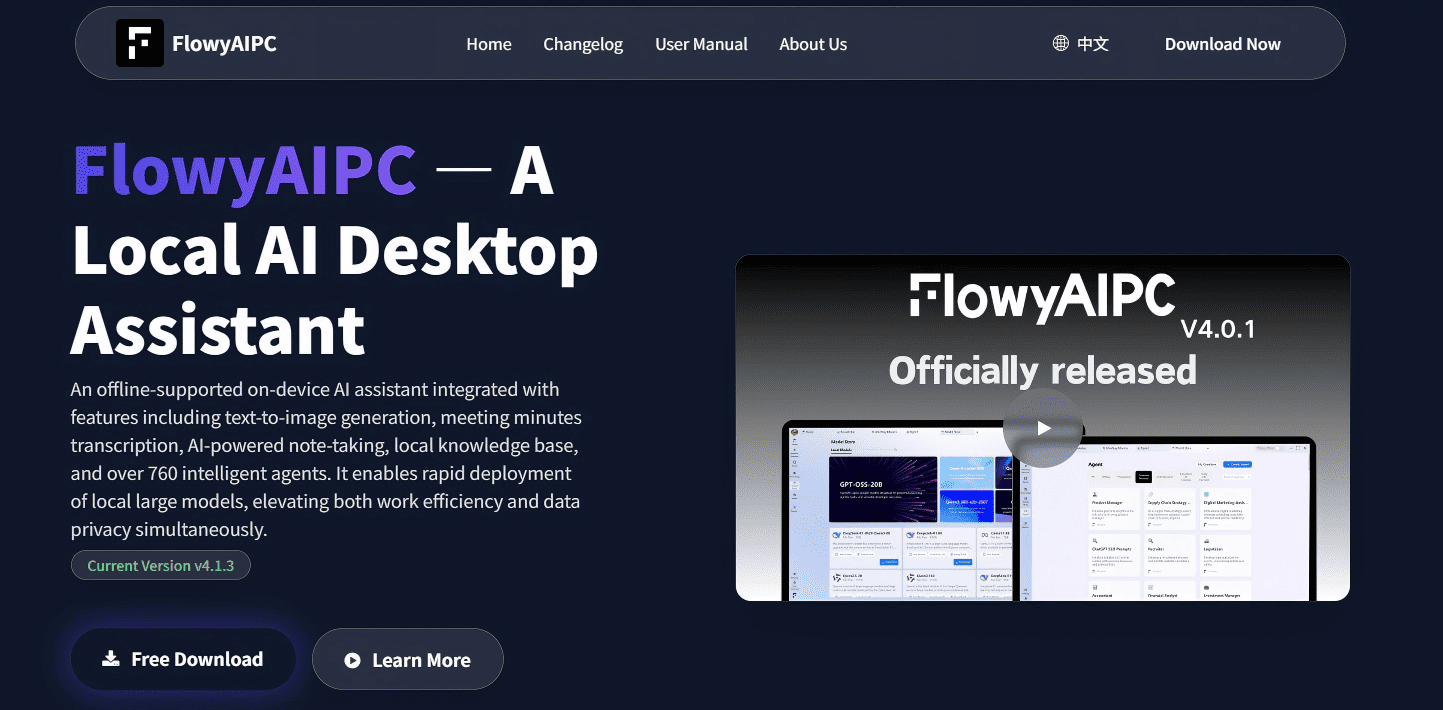 オフライン対応のエッジAIアシスタント。テキスト生成、画像生成、会議議事録、AIノート、ローカルナレッジベース、760以上のエージェント機能を統合。ローカル大規模モデルを迅速に導入し、業務効率とデータプライバシーを同時に向上させます。