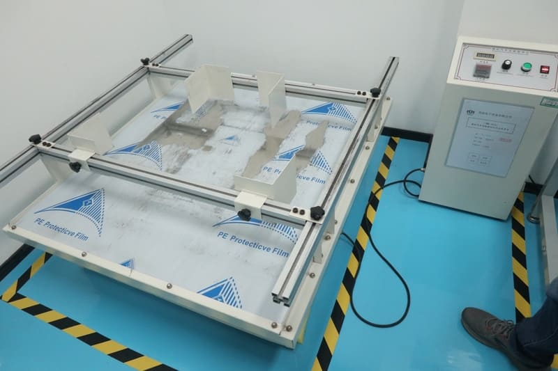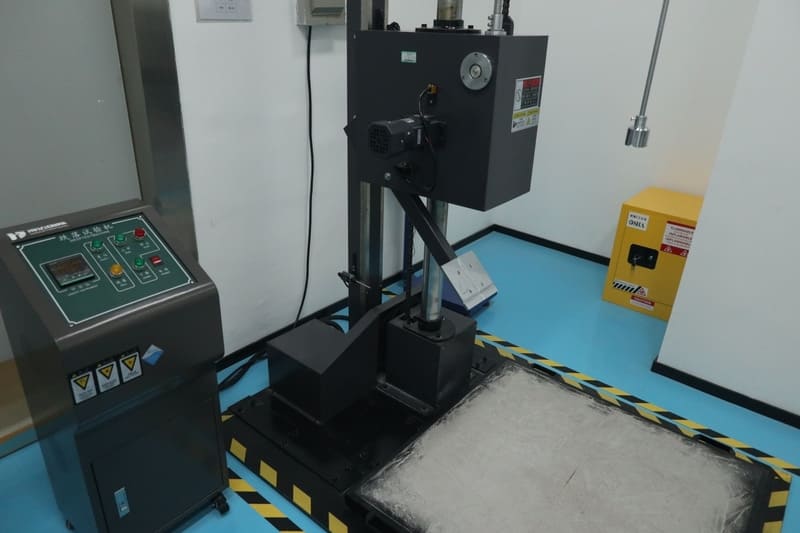 こちらは落下試験。本体のみのテストに加え、箱に入れた状態のテストも行なわれる