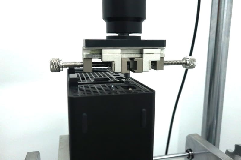 コネクタ挿抜試験。ボタンやコネクタは部品として挿抜耐久回数のスペックが公開されているのだが、これはあくまでも部品単体の話。基板に実装した後だと、ハンダなどにも負荷がかかるし、本体に歪みが生じる可能性もあるため、必ず実装した状態で試験を行なっているのだ