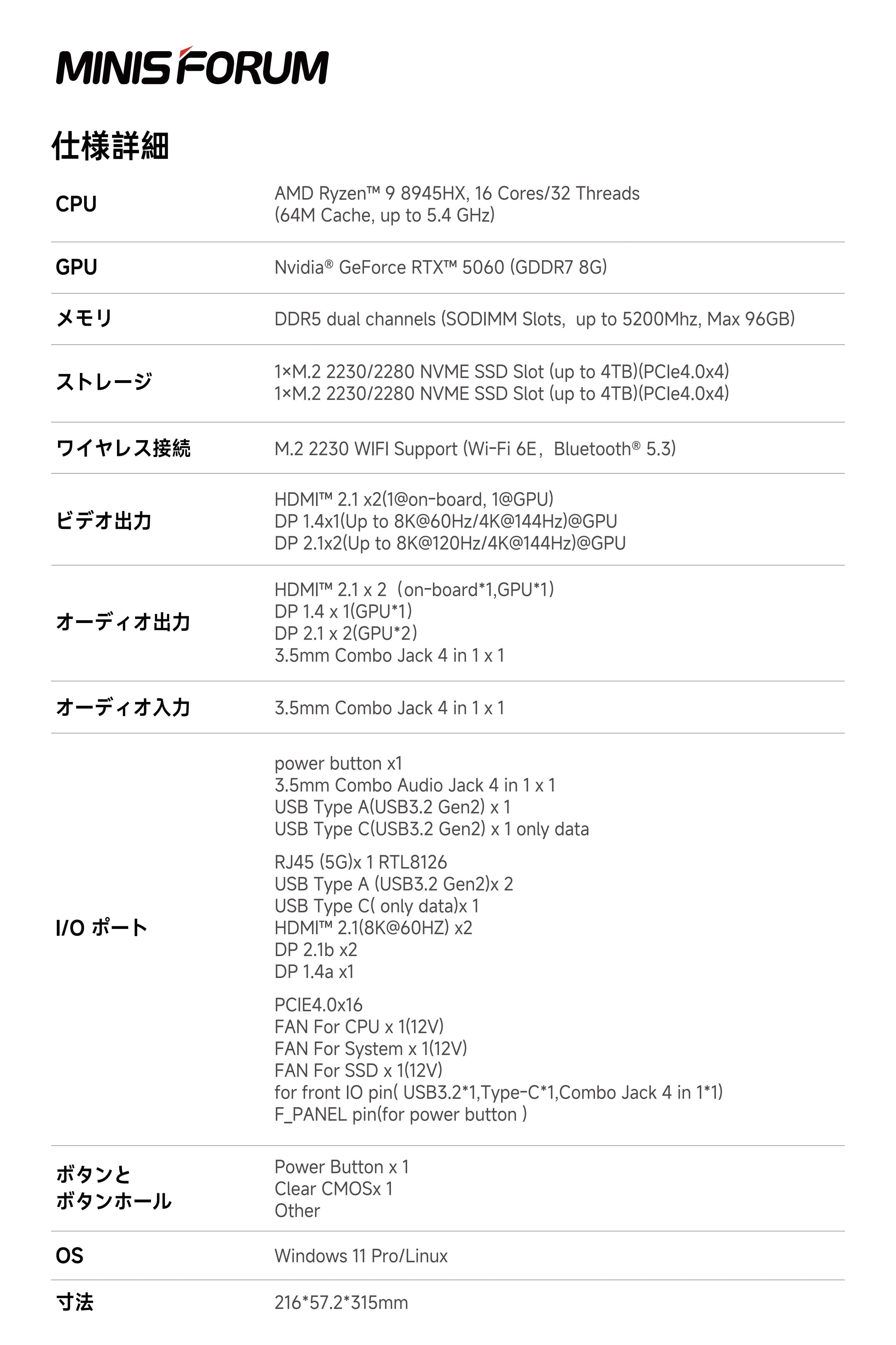 AMD Ryzen™ 9 9955HX / Ryzen™ 9 8945HX / Ryzen™ 9 7945HX / Ryzen™ 7 7745HX