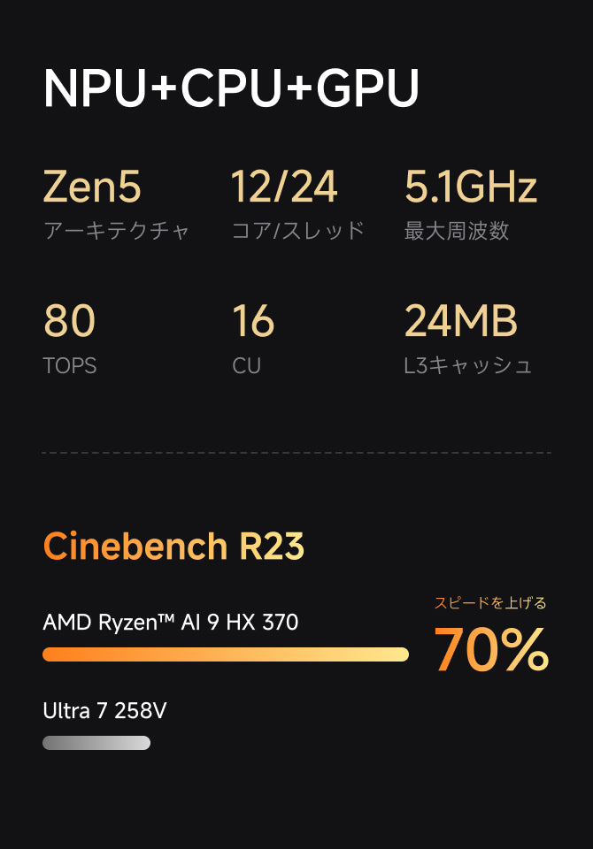 - AMD Ryzen™ AI 9 HX 370(最大80TOPS)