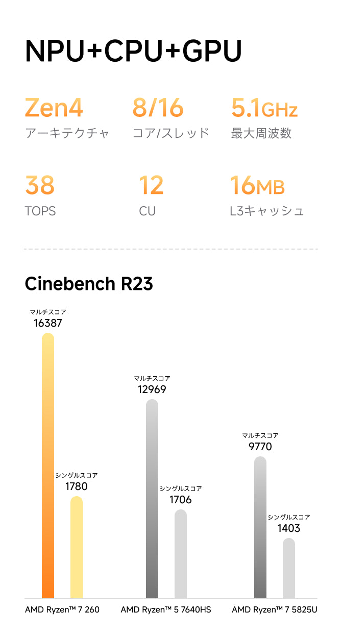 (8 コア/16 スレッド 、L3キャッシュ合計16MB、最大ブースト・クロック5.1GHz)