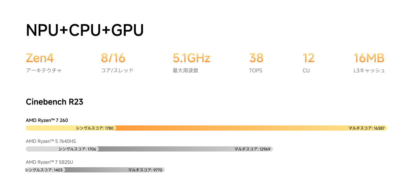 (8 コア/16 スレッド 、L3キャッシュ合計16MB、最大ブースト・クロック4.9GHz)