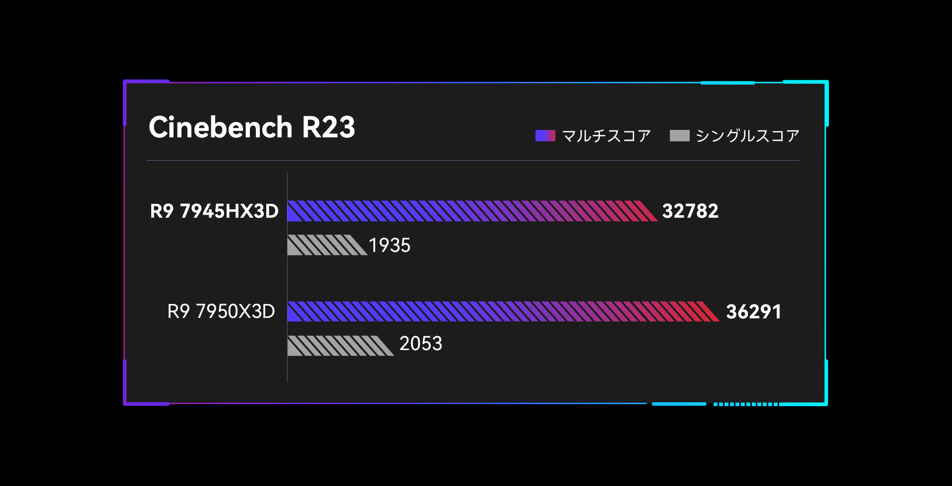 AMDの「Zen 4」アーキテクチャを採用したAMD Ryzen™ 9 7945HX3D プロセッサーは 16 コア・32 スレッドを提供します。パフォーマンスが前世代より約30% 向上させ、優れたマルチタスク処理と計算能力を提供しています。