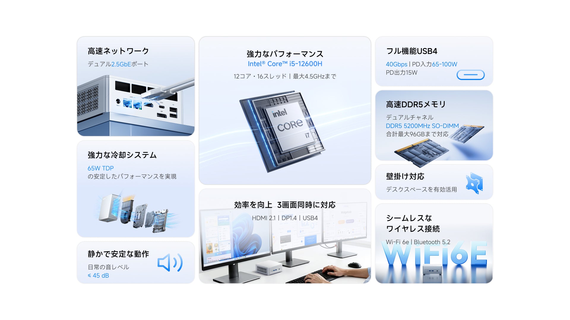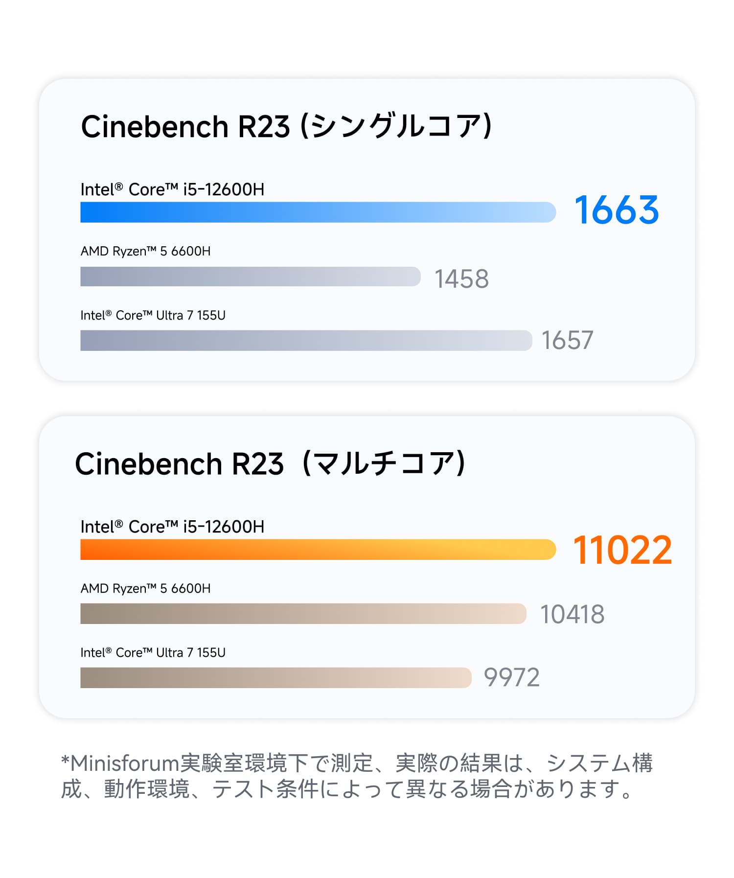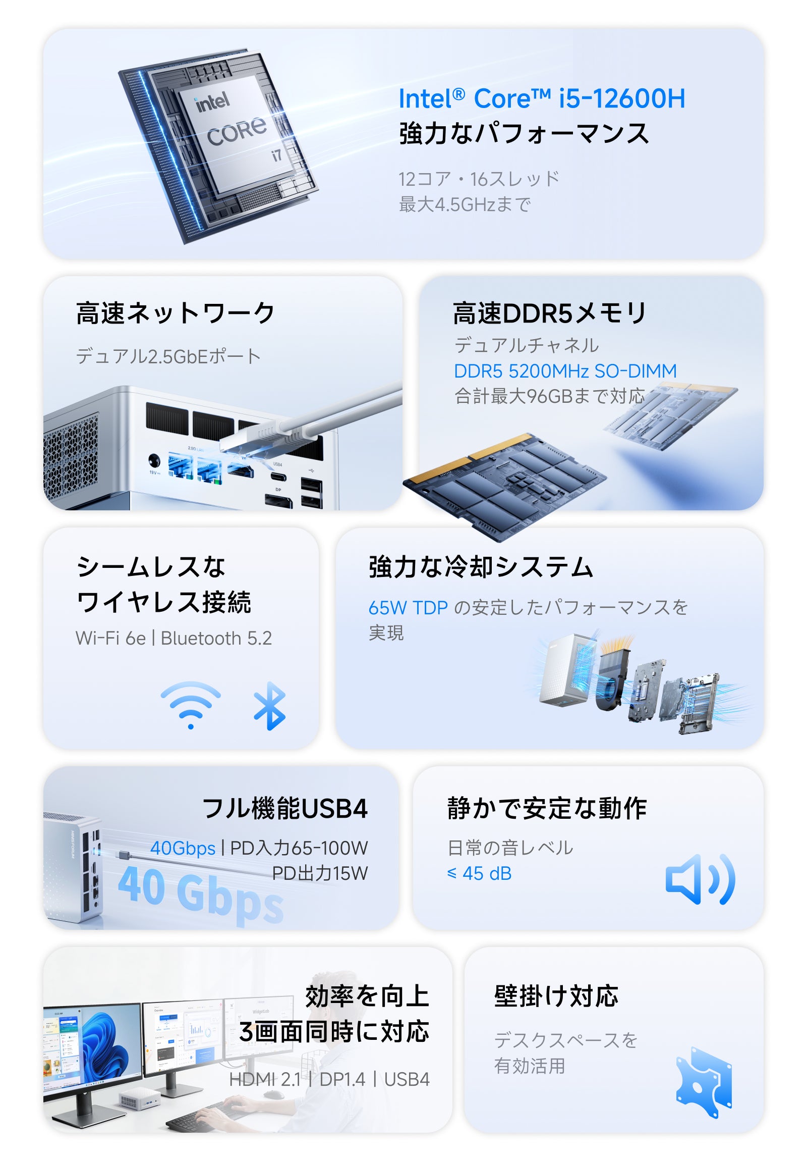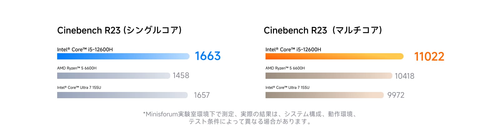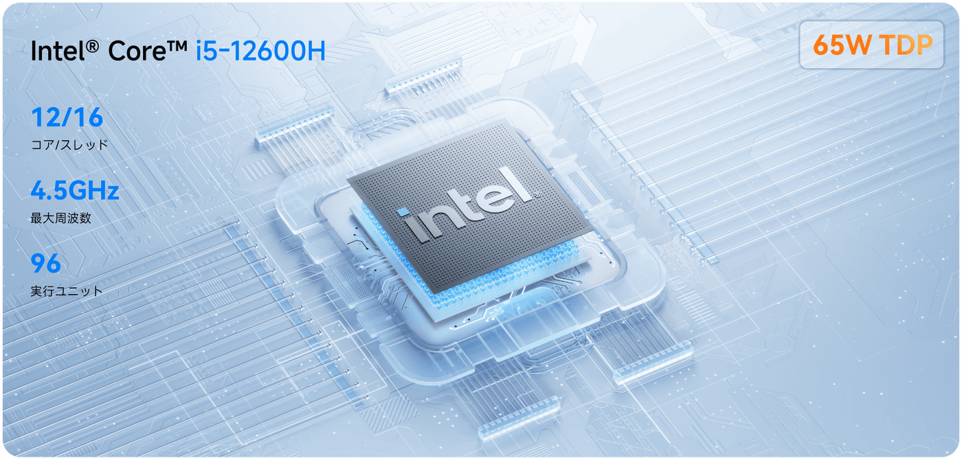 96ユニットのフルパワー統合グラフィックカードが採用しているインテル Core™ i5-12600H プロセッサーを搭載します。コンパクトなボディは省スペースでありながら、パワーは妥協せず、あらゆるシーンでスムーズなレスポンスを提供し、ビジネス環境では、大きなファイルを簡単に管理し、マルチタスクをスムーズに処理します。