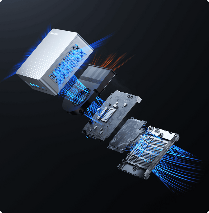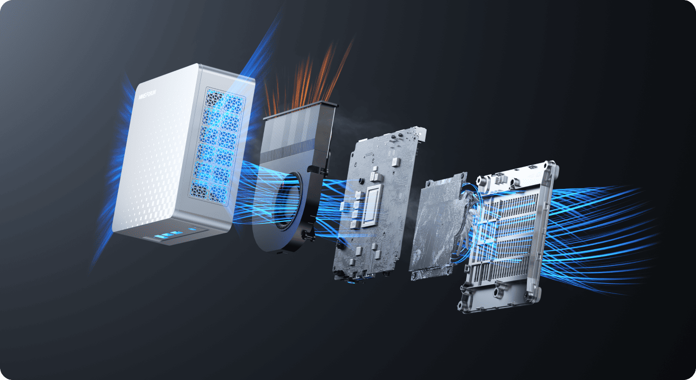 専用のアクティブ冷却ファンがDDRモジュールとSSIDモジュールに直接作用し、パソコンの動作中に発生する熱を効果的に放熱し、長時間にわたる安定したシステム動作を実現します。