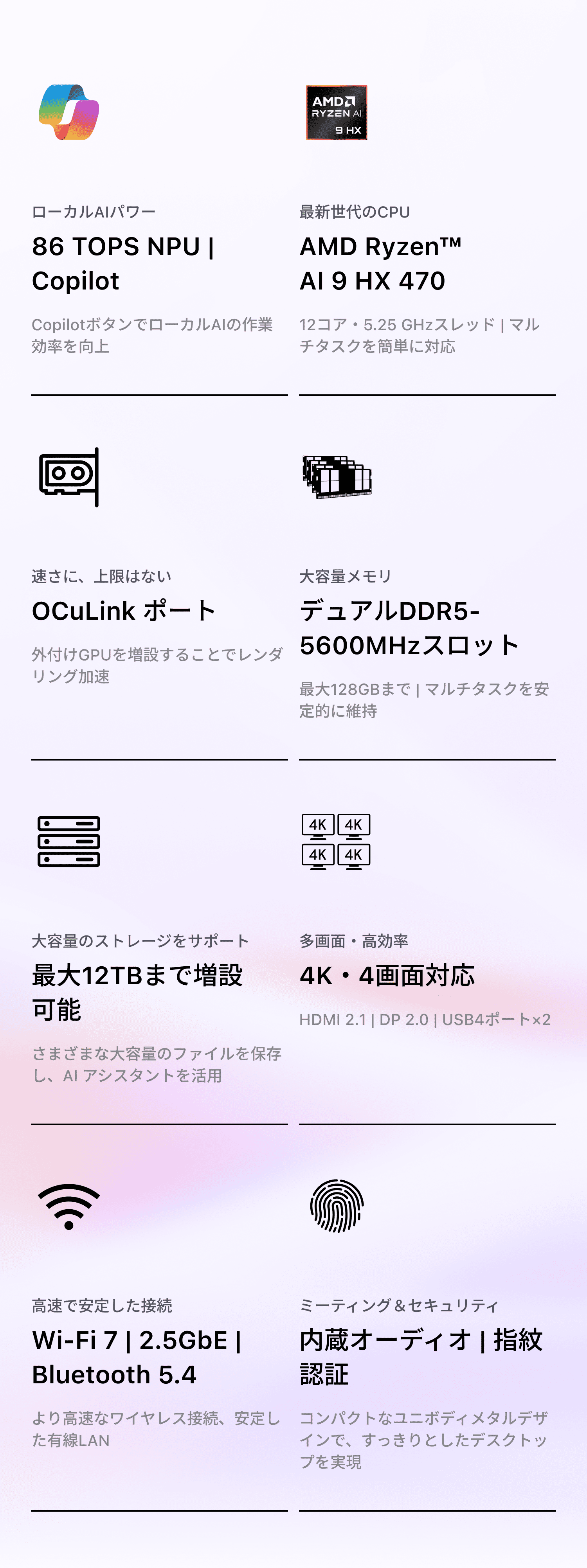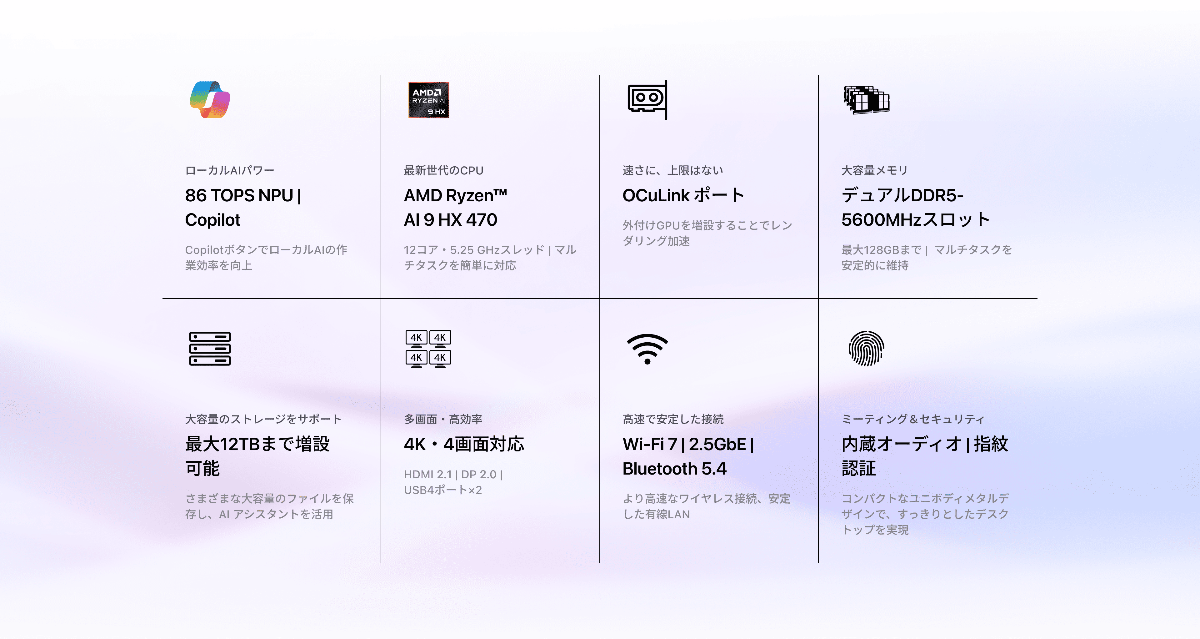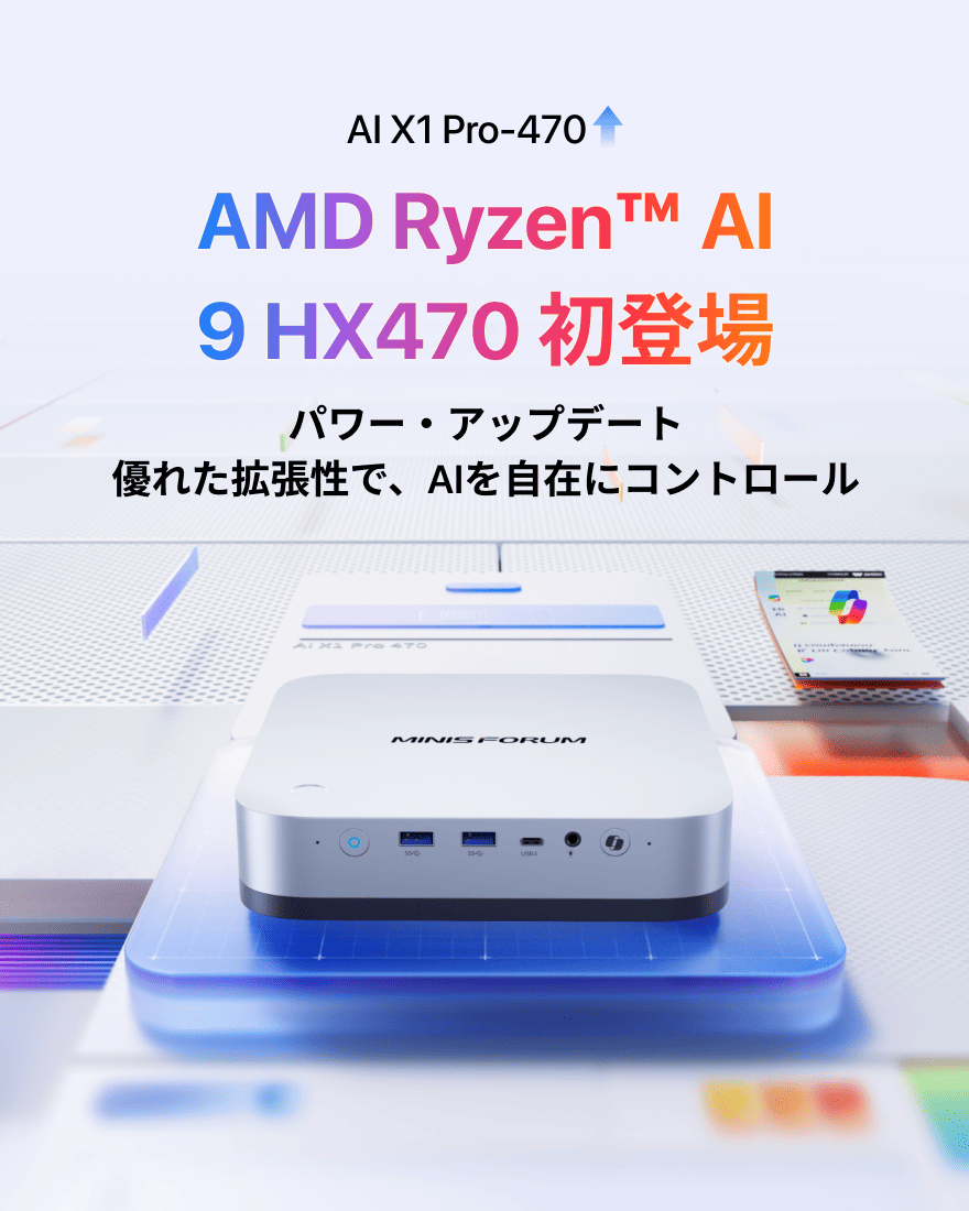 最先端のAMD Ryzen™ AI 9 HX 470プロセッサーを搭載したAI X1 Proが、あなたを未来へと導きます。次世代AIテクノロジーを体験し、マルチタスク能力を大幅に向上させ、作業効率を高め、チームコラボレーションを強化し、かつてないほどのハイパフォーマンス体験を実現します。