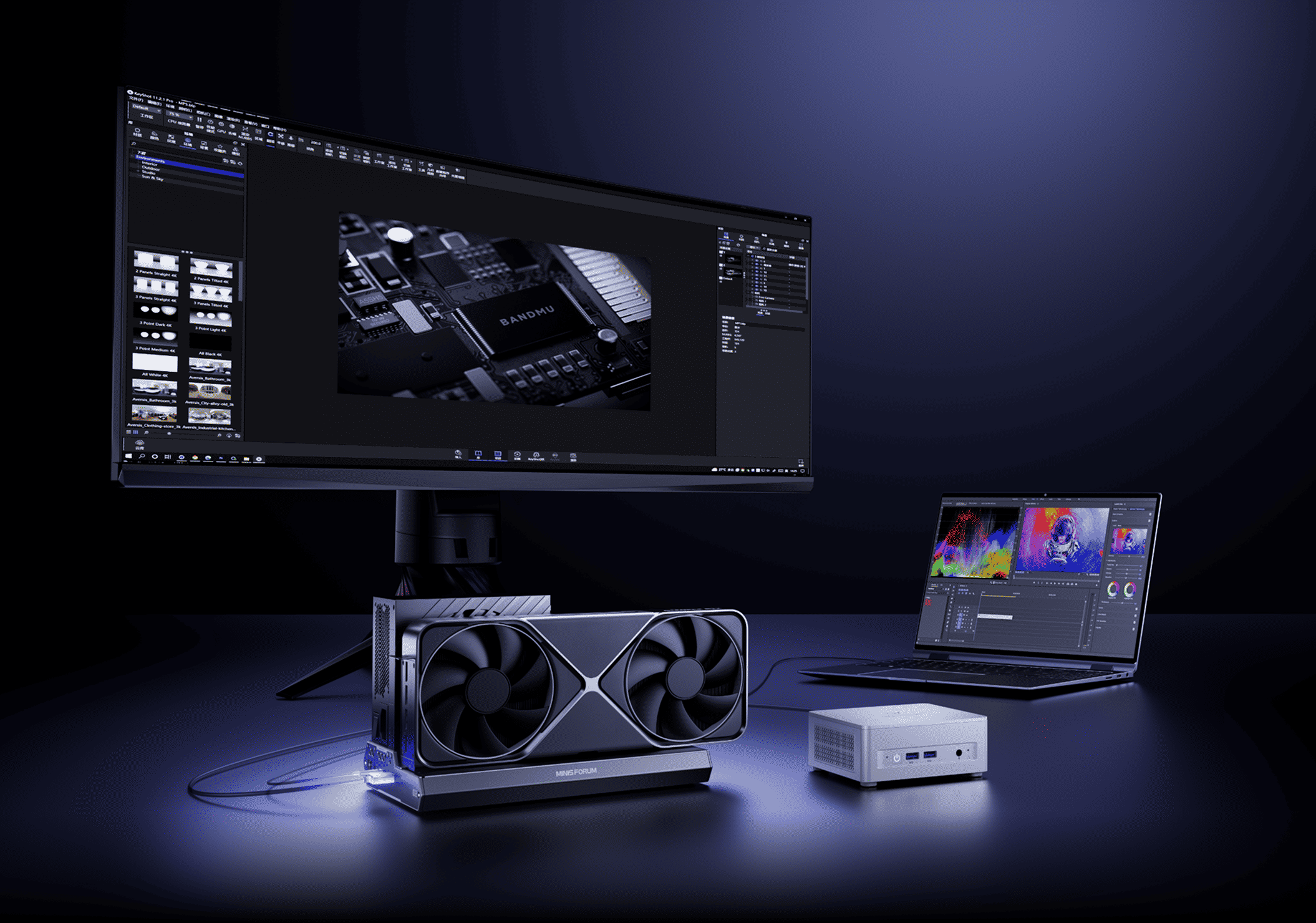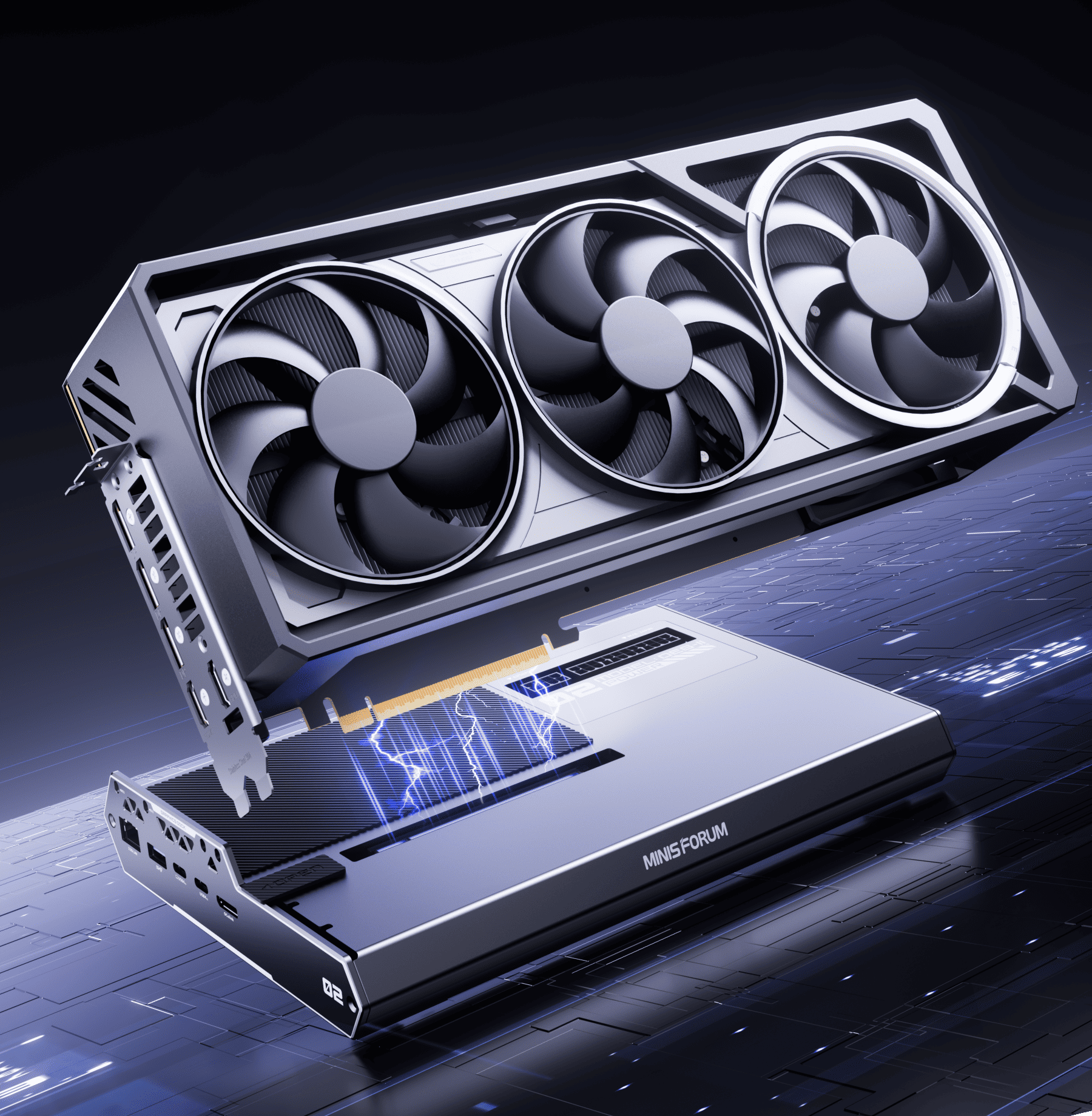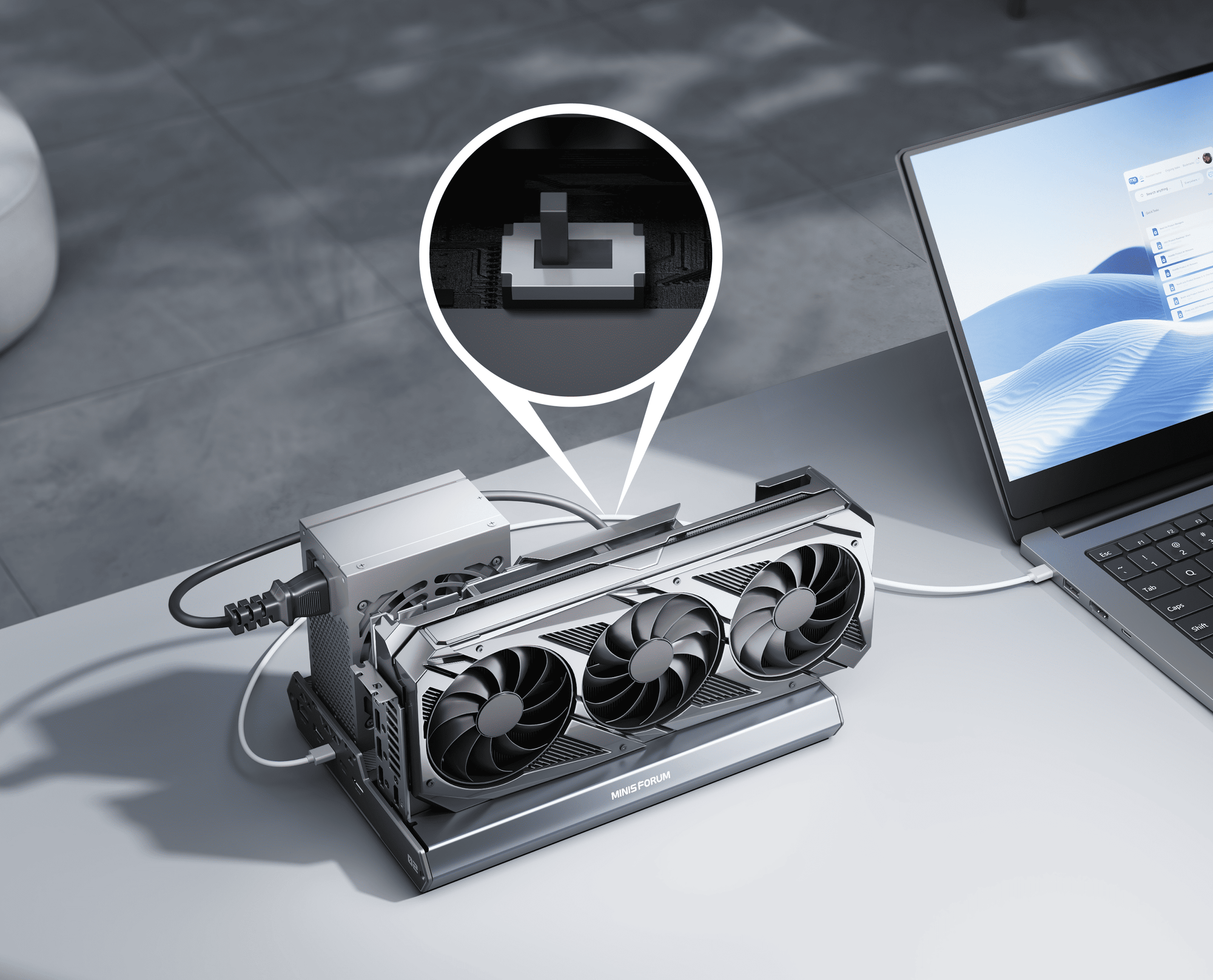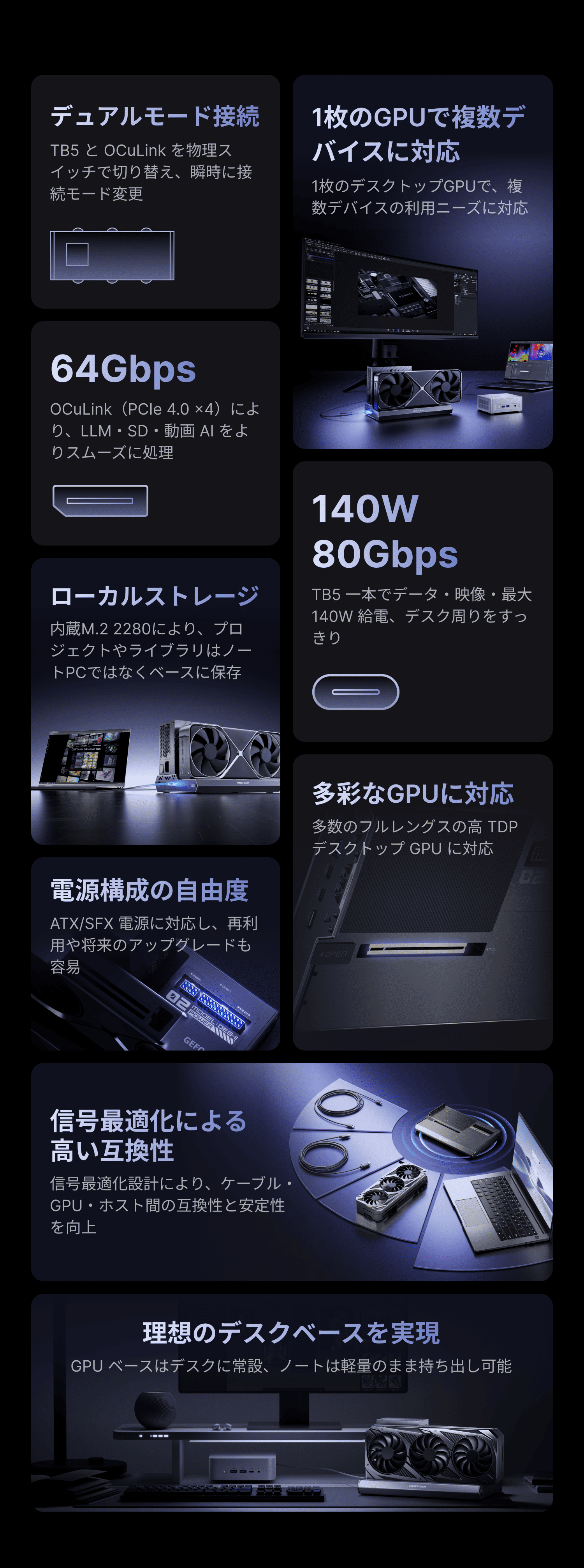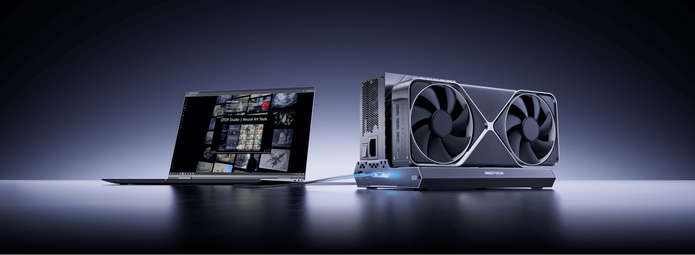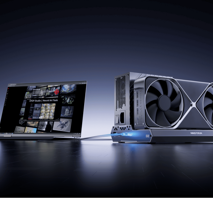 パワーをミニPCにデスクトップ級GPU性能を追加します。AI推論、レンダリング、クリエイティブ作業を自在にこなせます。