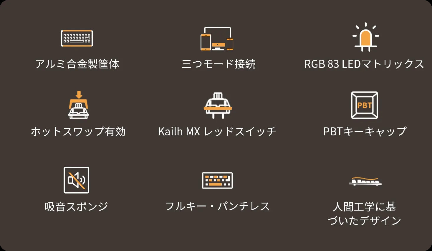 静音性とリニアな特性で知られるKailhのMX赤軸スイッチを搭載し、スムーズな入力体験を提供します。 安定した力曲線を持つスイッチが、長時間タイピングを行い、スピードと精度の両方を求める方に最適です。