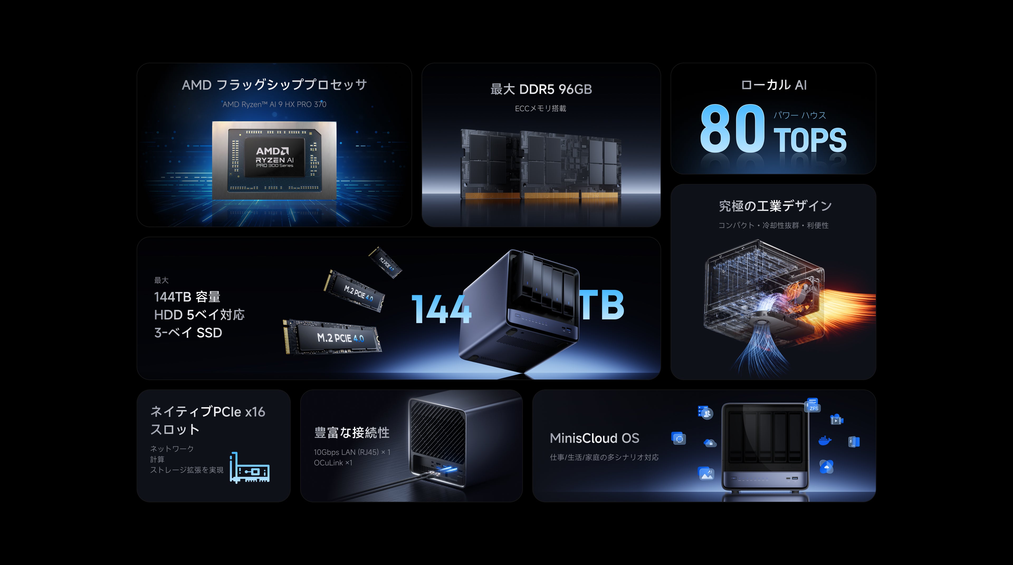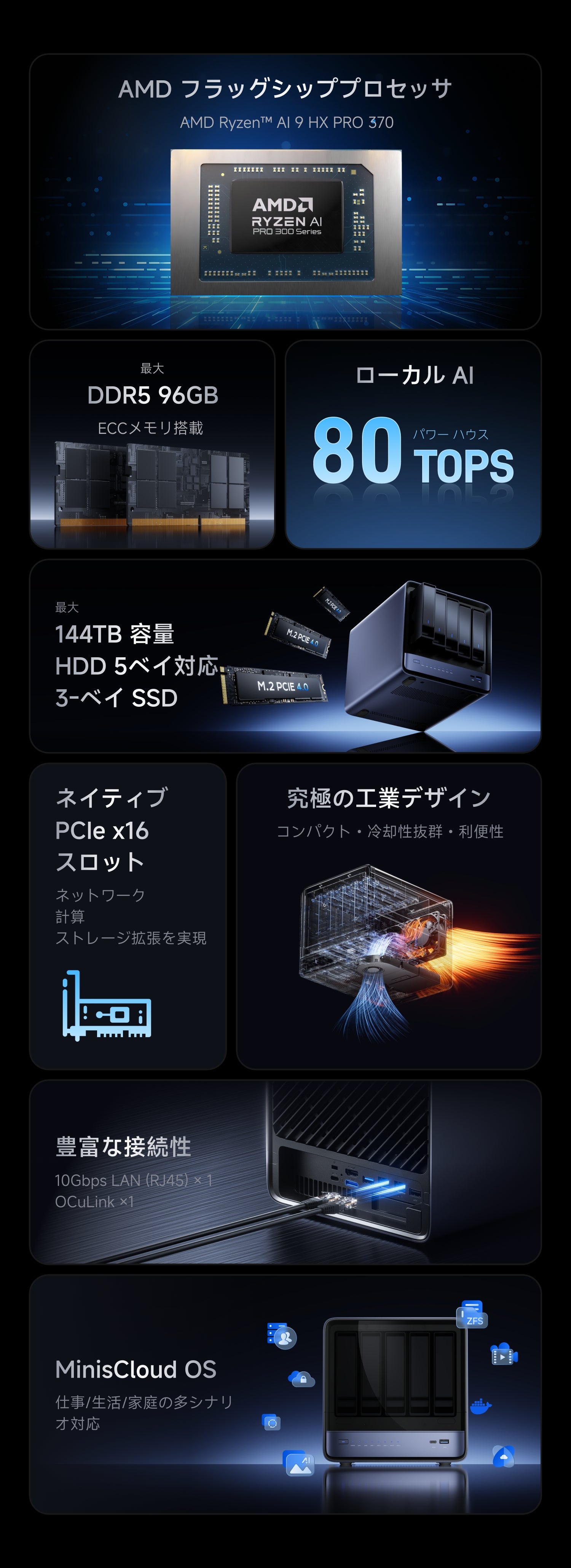 - 10Gb+5GbE LAN丨MinisCloud OSがプリインストール済み