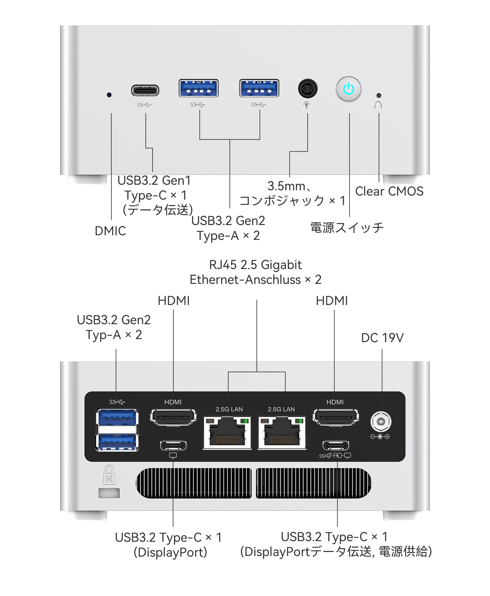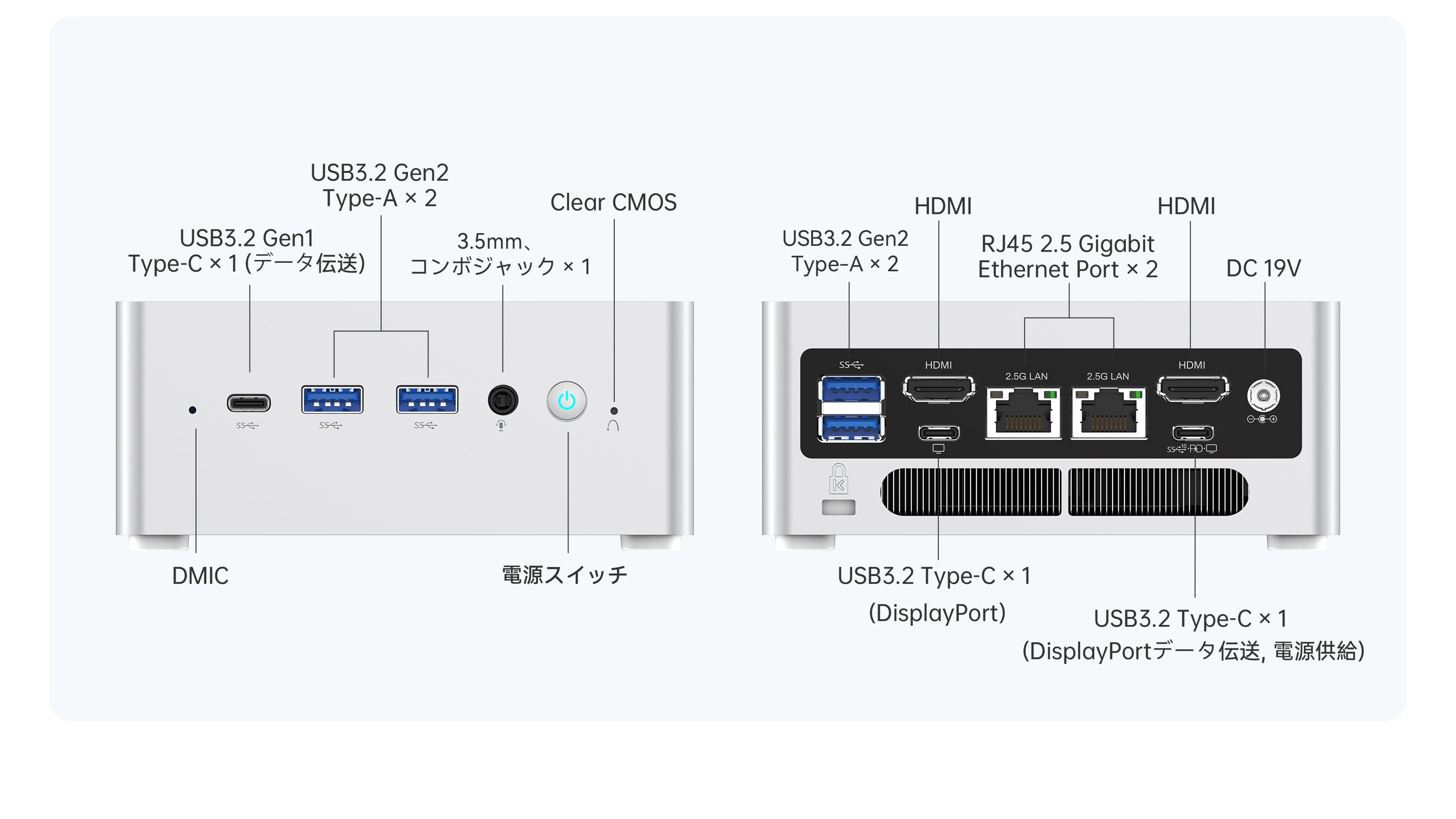1×USB-C 3.2 (Gen1、Data Only、前側)