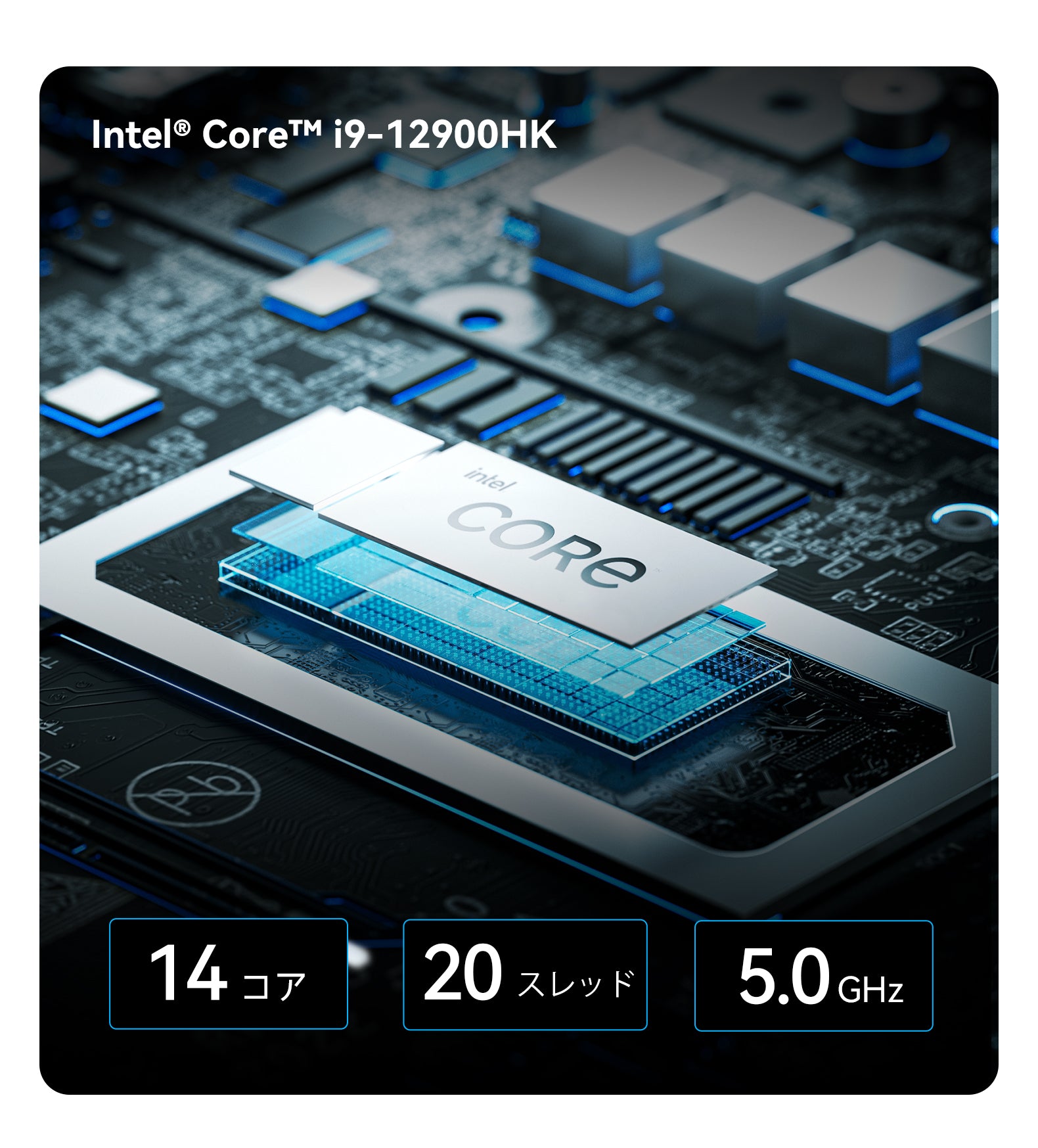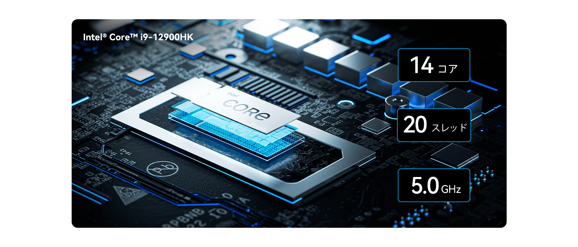 - Intel® Core™ i9-12900HK(14コア/20スレッド)