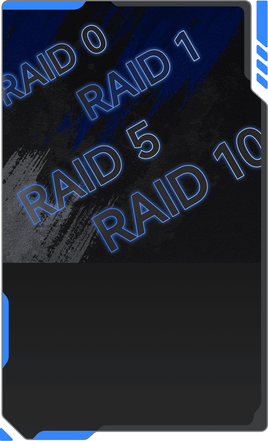 マルチドライブ拡張とRAID 0/1/5/10機能をサポートし、高速スループットとデータ冗長性を兼ね備え、厳しいワークロード要件にも対応します。