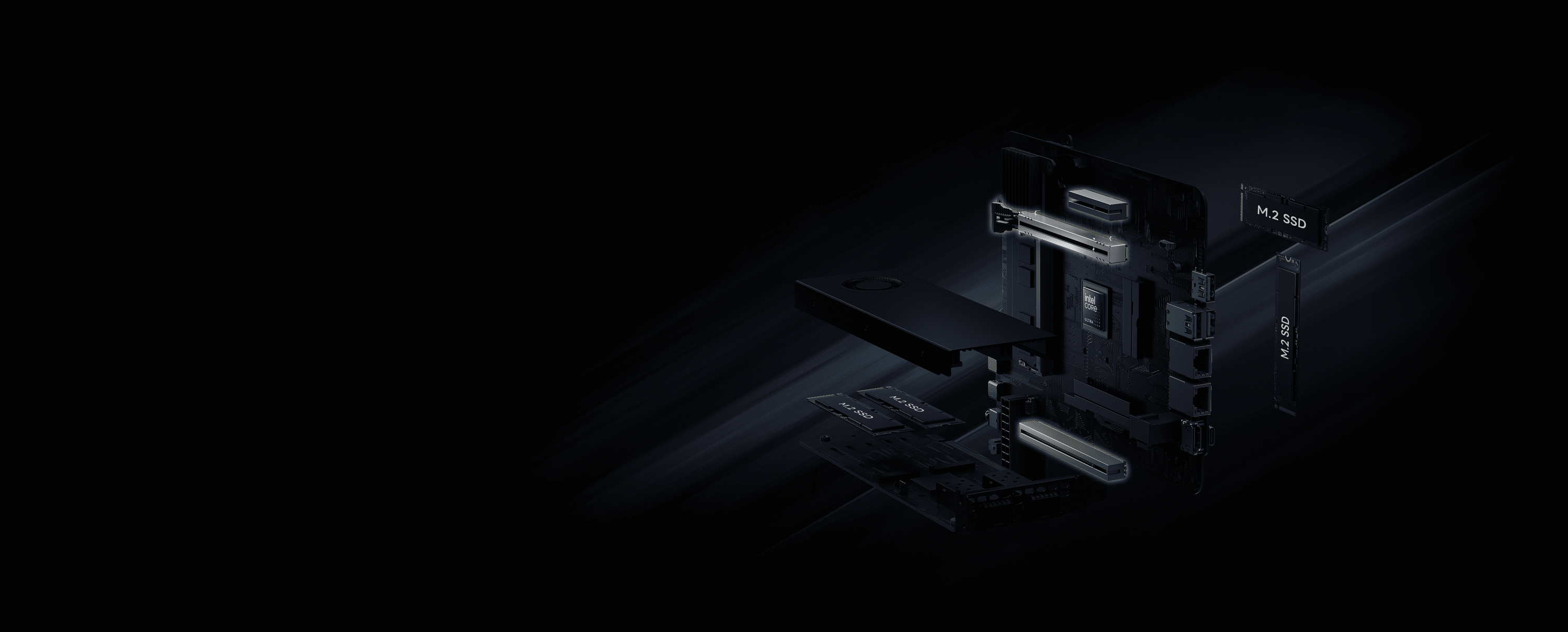 - デュアル DDR5-4800Mhz | M.2 2280 SSD スロット