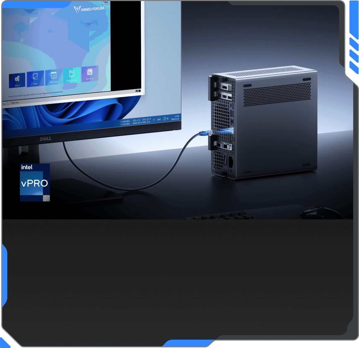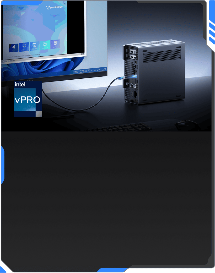BIOSレベルのKVMを搭載したIntel® vPro®テクノロジーは、完全なリモートコントロールと24時間365日の稼働を実現します。持続的なワークロード下でも産業用グレードの信頼性を確保しています。