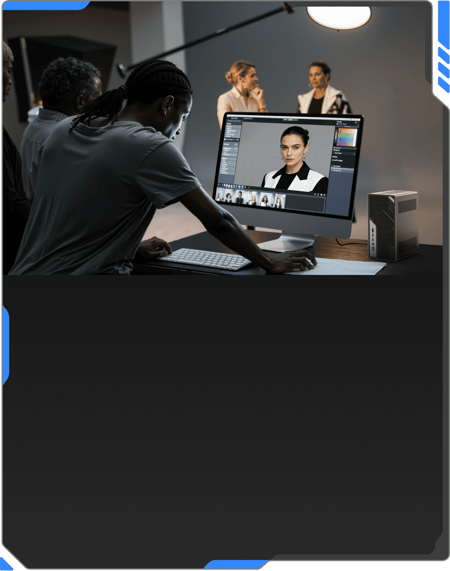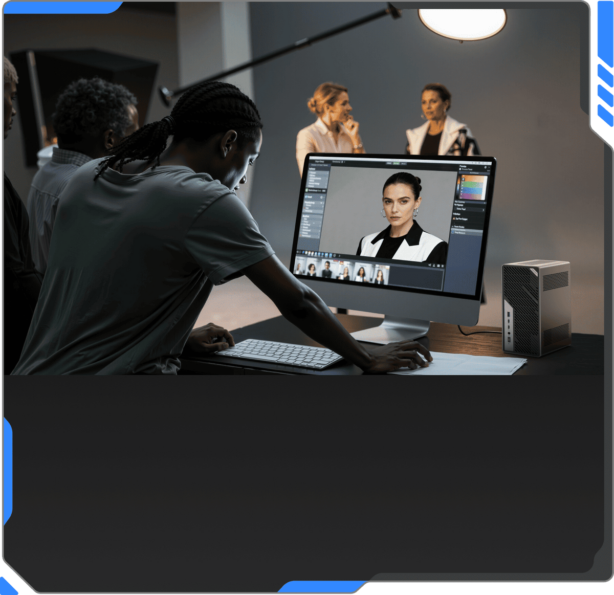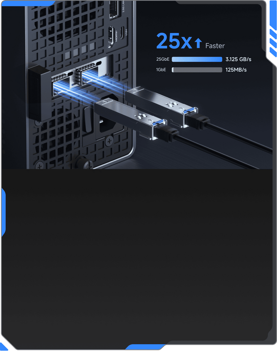 超高速の転送スピードがクリエイティブなワークフローを強化し、デュアル25GbEポートとUSB4 v2(80Gbps)ポートにより、瞬時のデータ同期とスムーズなマルチタスク編集を実現します。
