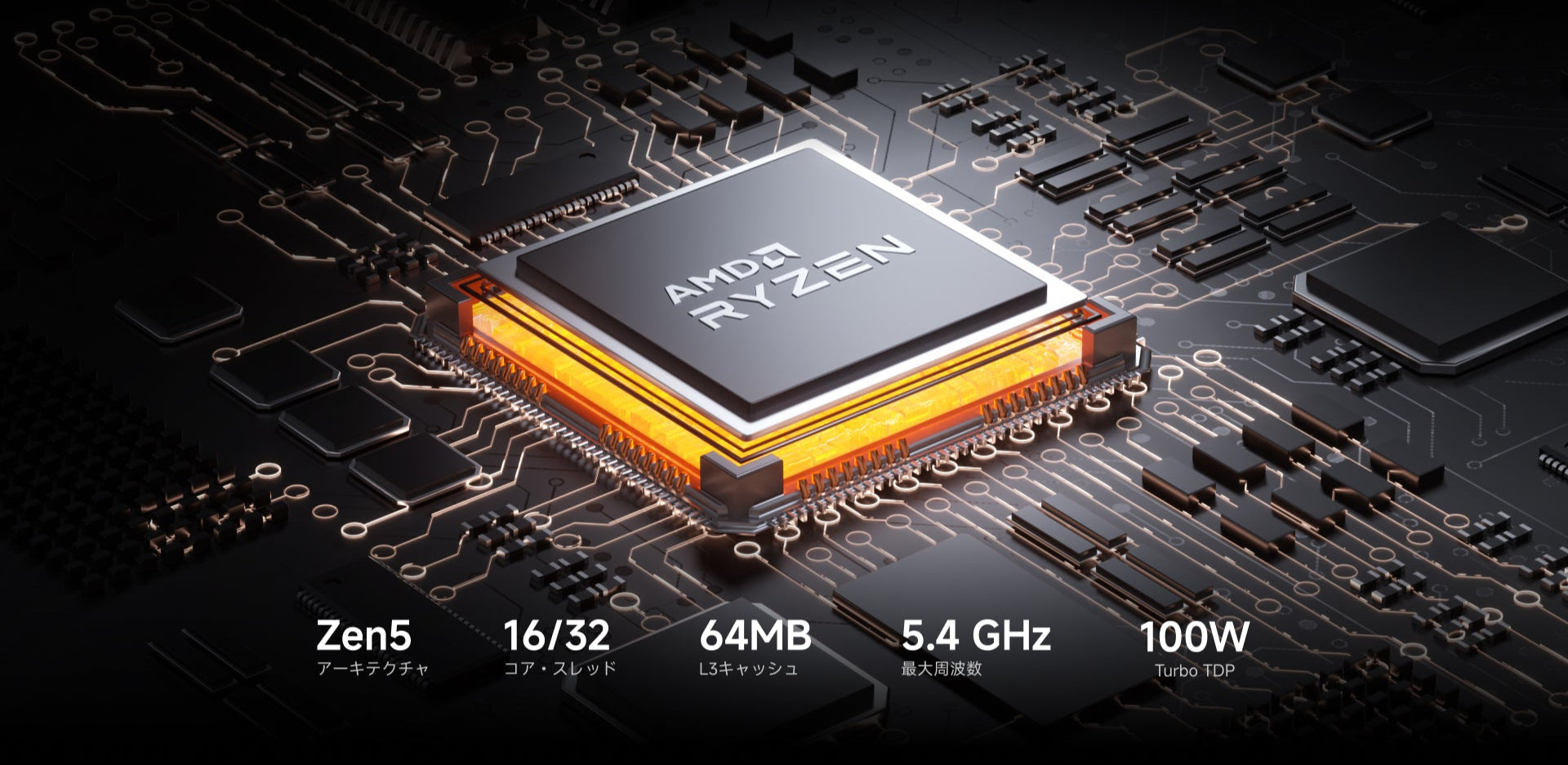 (Zen 5|16 コア/32スレッド、64M L3キャッシュ、最大クロック数 5.4 GHz)