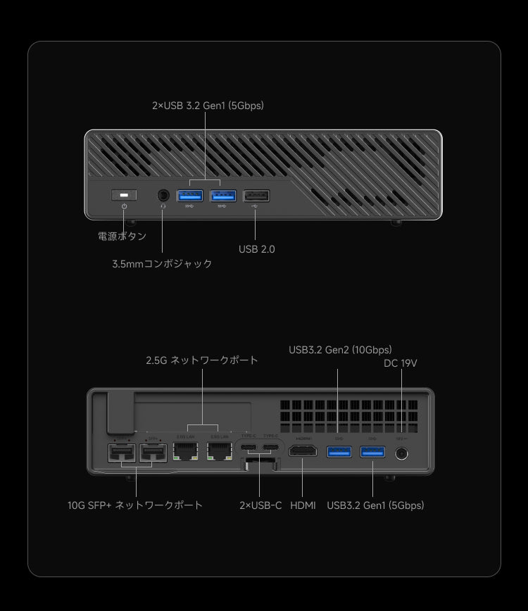 USB3.2 Gen2 Type-C ポート (Alt DP2.0、10Gbps)×2