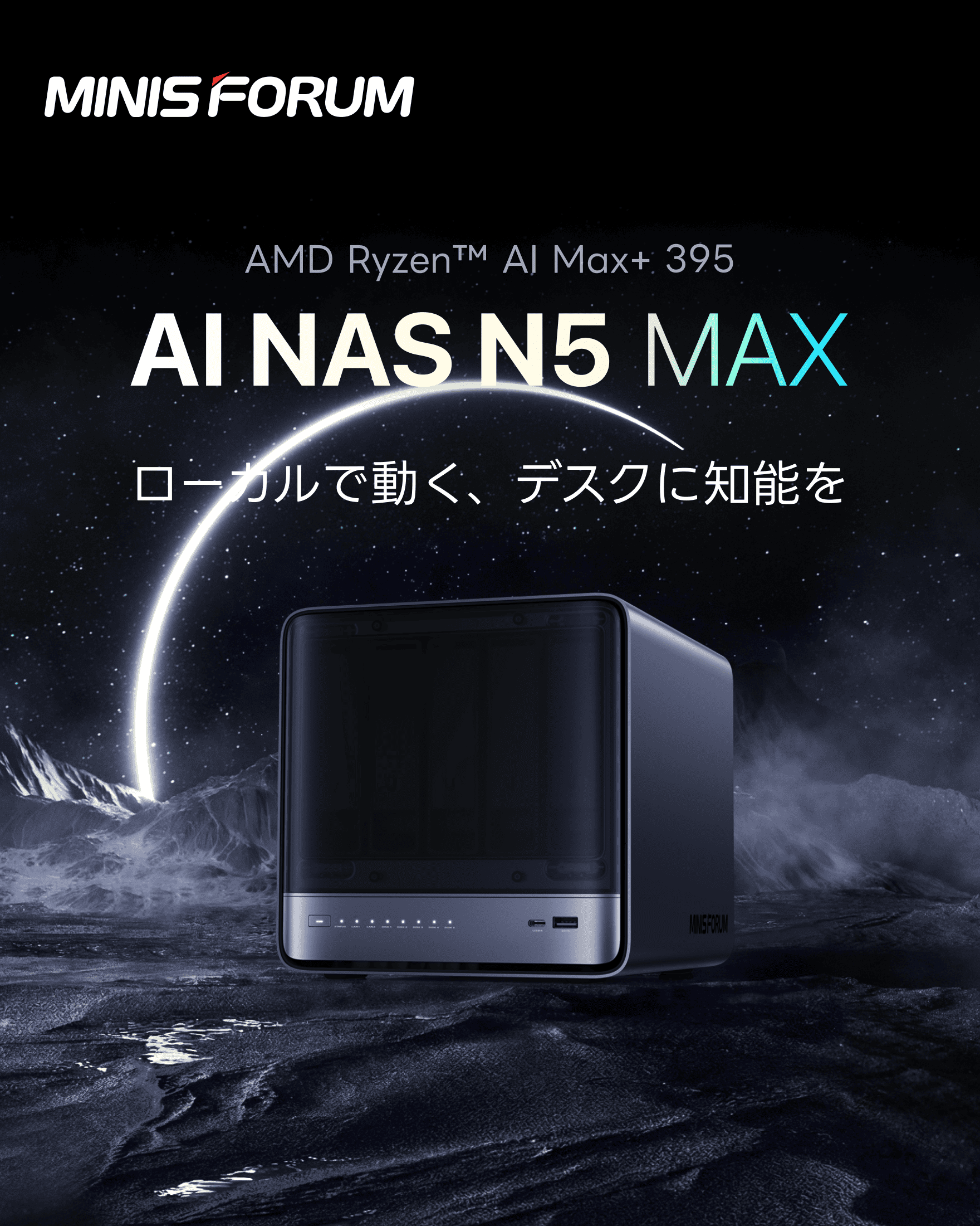 N5 MAXは、AI、データ、ワークフローを一つのシステムに統合した次世代のオールインワンソリューションです。圧倒的な計算能力でローカルAIを高速処理し、大規模言語モデルの実行から複雑なデータ分析まで、クラウドに依存することなくあなたの手元で完結します。クリエイターからAI研究者、中小企業まで、N5 MAXはあなたの仕事の幅を広げる拡張性と柔軟性を備えた基盤です。