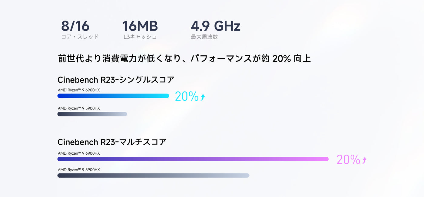 (8 コア/16 スレッド 、L3キャッシュ合計16MB、最大ブースト・クロック4.9GHz)